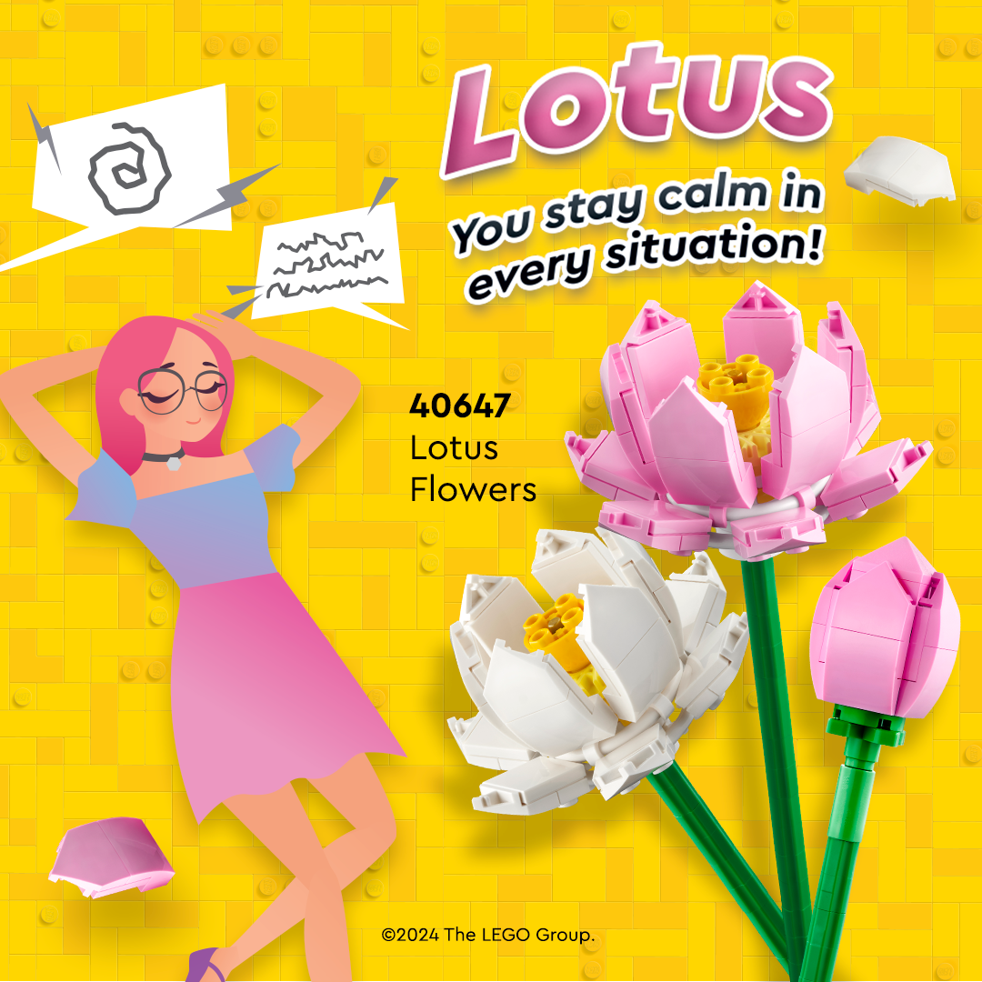- LEGO 40647 Lotusbloemen: Bouw een prachtige lotusbloem met roze bladeren en een groene vijverbasis. Bevat geen minifiguren. (Aanbevolen leeftijd: 18+) [EAN 6734195277]