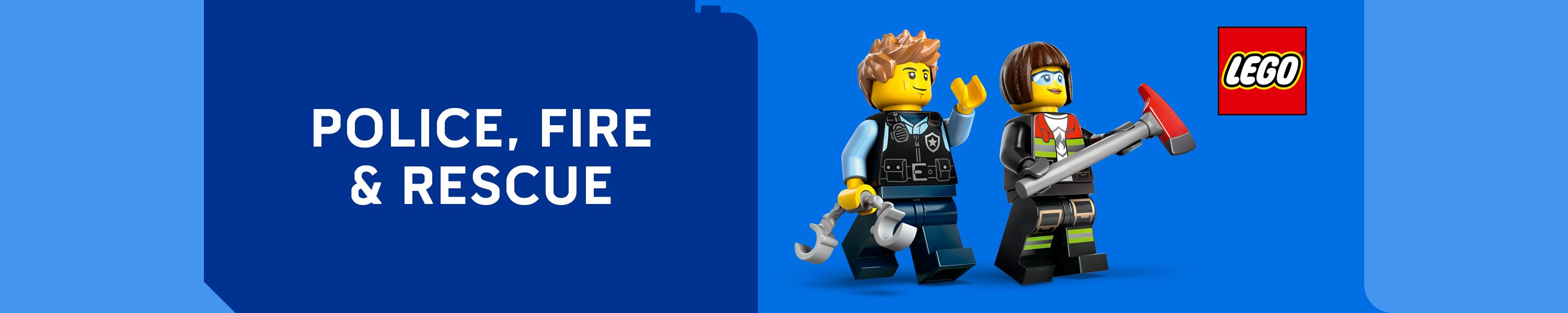 Brandweer: Blus branden en red mensen in nood met de LEGO brandweerkazerne en -voertuigen.