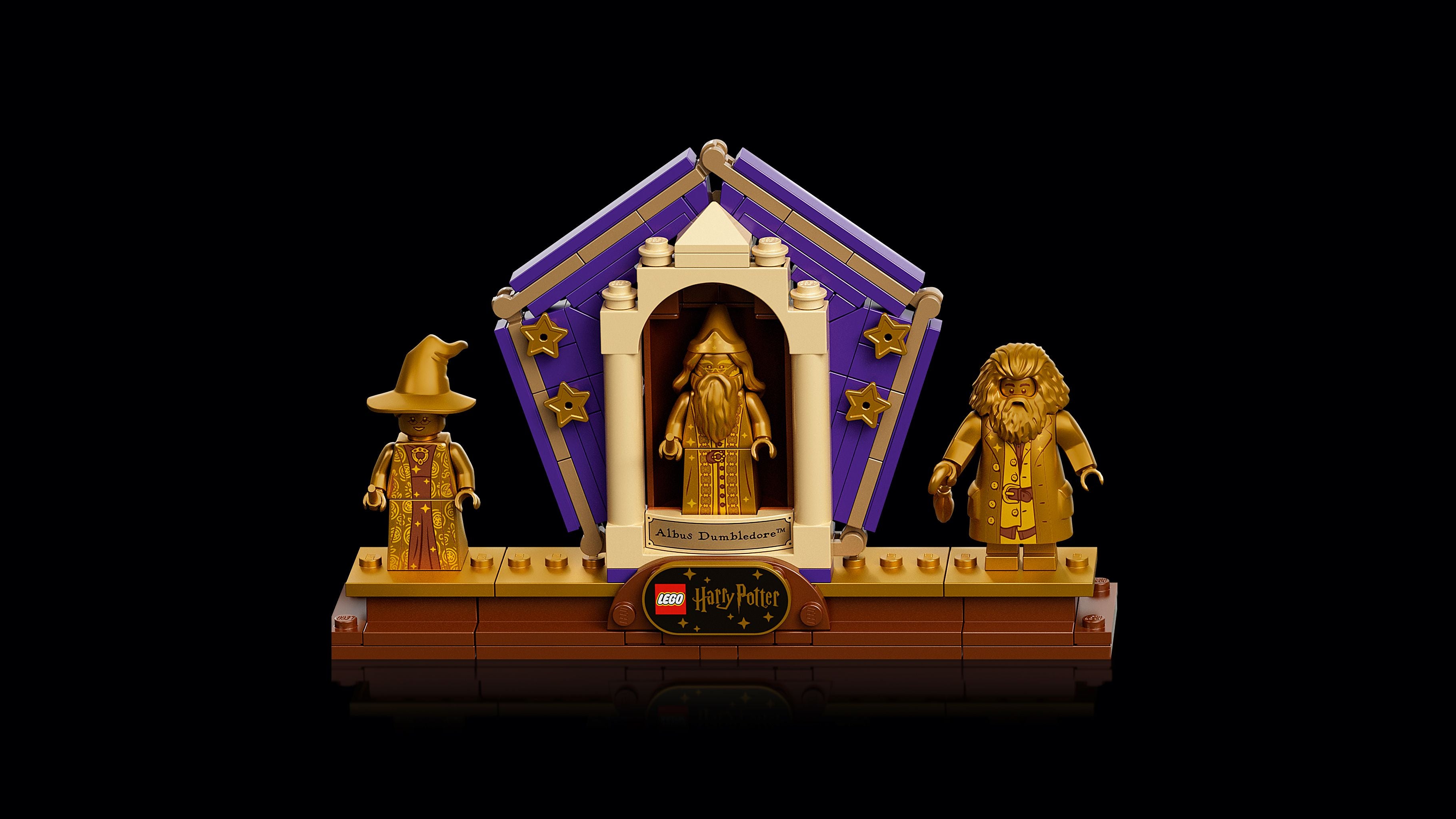 The set also includes 3 exclusive Golden Anniversary minifigures: Albus Dumbledore™, Minerva McGonagall™ and Rubeus Hagrid™.