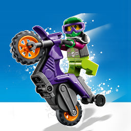 Give children aged 5 and up the time of their lives with this fun LEGO® City Cyber Stunt Motorbike (60358) set, featuring a toy motorbike with flywheel drive for performing cool jumps and stunts. With the LEGO City Stuntz minifigure of a motorcyclist they can perform unlimited stunts.