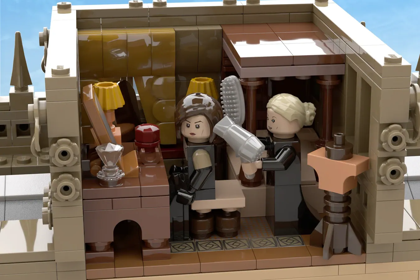 - De set is ontworpen met oog voor detail, van de imposante gevel tot de weelderige interieurs.