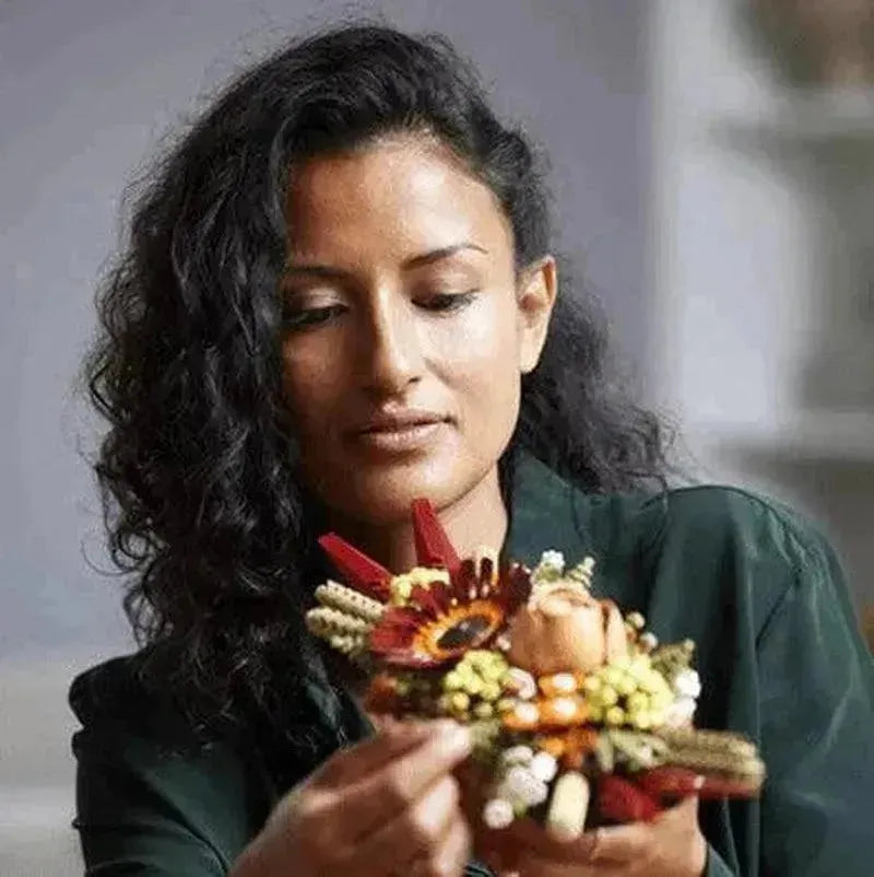 - Het LEGO Bloemenstuk met Gedroogde Bloemen is gemaakt van duurzame materialen.