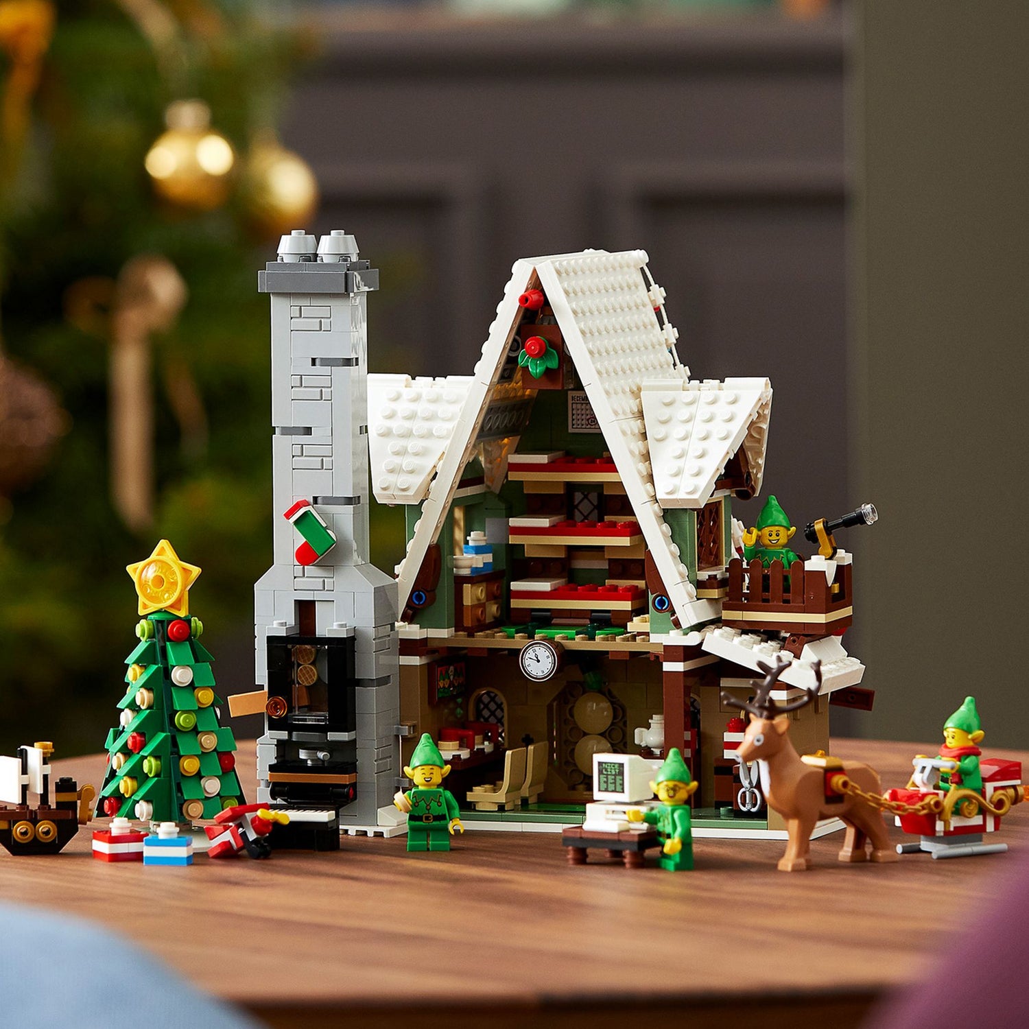 In dit wonderlijke, kleurrijke huisje genieten de vrolijke elfjes van de Kerstman van hun welverdiende vrije tijd door wafels te bakken, cadeautjes in te pakken en tochtjes te maken met door raketten aangedreven sleeën. Het heeft zelfs een telescoop op het dak waarmee ze de slee van de Kerstman kunnen volgen wanneer deze op kerstavond opstijgt naar de nachtelijke hemel. Een versierde kerstboom is omgeven door cadeautjes en een computer helpt de elfen bij te houden wie stout en wie lief is!