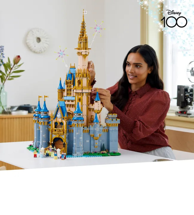 Deel je liefde voor Disney Princess personages en hun partners met deze LEGO® ǀ Disney: Disney kasteel (43222) set. Deze gedetailleerde set, gebaseerd op verschillende bekende Disney Princess films, heeft verschillende kamers, klassieke Disney verwijzingen, nostalgische details en een speciale tijdcapsule ter gelegenheid van 100 jaar Disney films. Het model beschikt ook over een draaiende dansvloer in de grote balzaal en een 'betoverde' open haard die kan draaien om het beruchte spinnewiel uit de film Doornroosje te onthullen.
