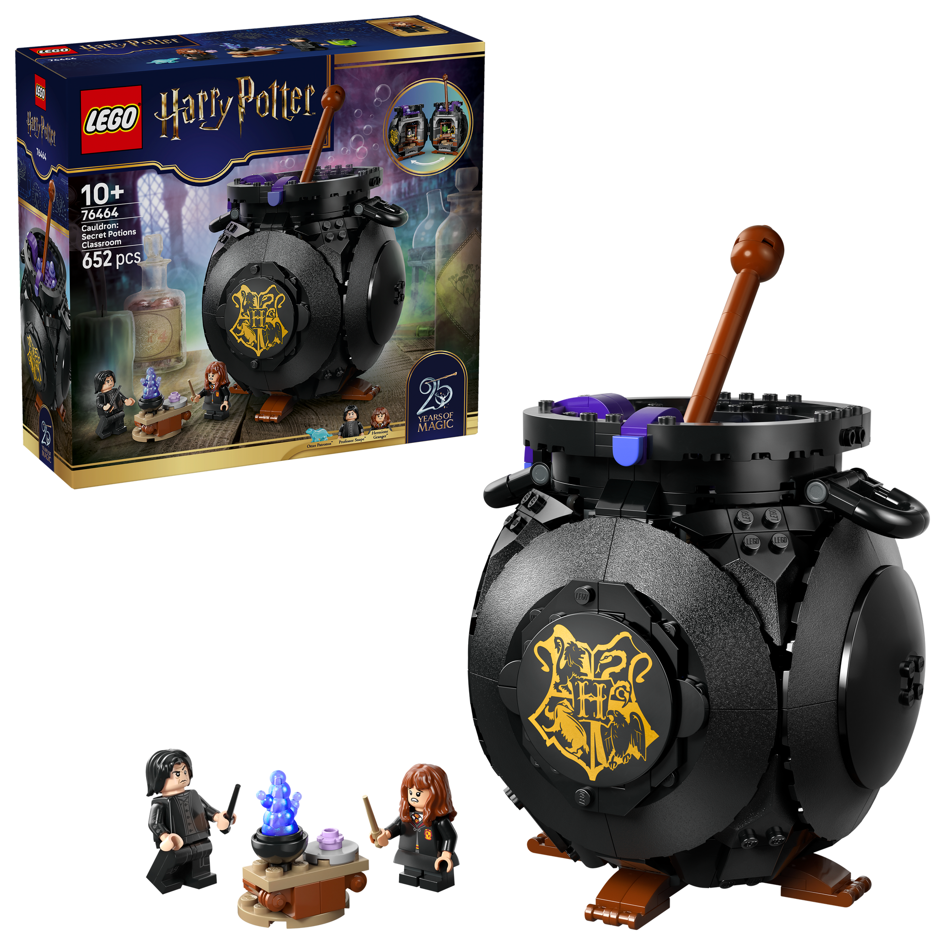 Geef kinderen een betoverende LEGO® Harry Potter bouwset (76464) om mee te spelen en neer te zetten: een magische ketel met een geheim toverdrankenklaslokaal! Dit is het perfecte Harry Potter cadeau voor creatieve meisjes, jongens en fans vanaf 10 jaar die gek zijn op Zweinstein en Professor Sneep. Met 652 LEGO steentjes creëer je een unieke, borrelende ketel die transformeert in een gedetailleerd klaslokaal.
